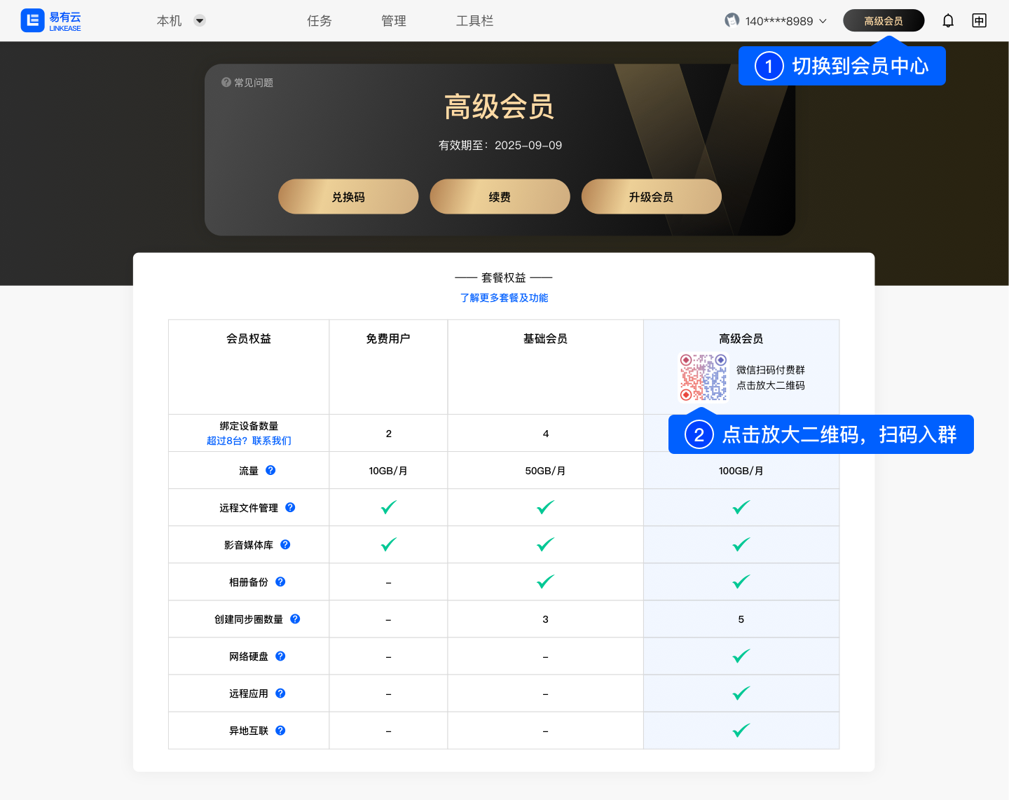 1.PC端进入“管理”页面,在侧边栏“设备套餐”查看